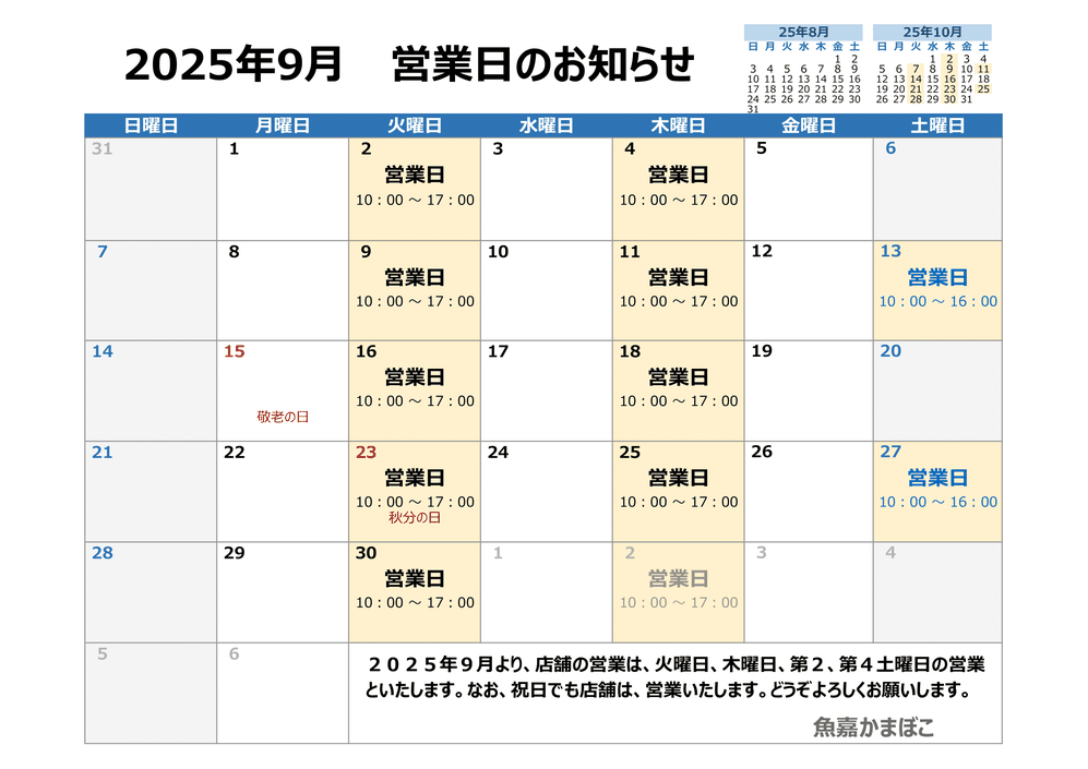 魚嘉かまぼこは、(株)サワライズグループとして2025年8月1日に店舗での営業を再開する運びとなりました。